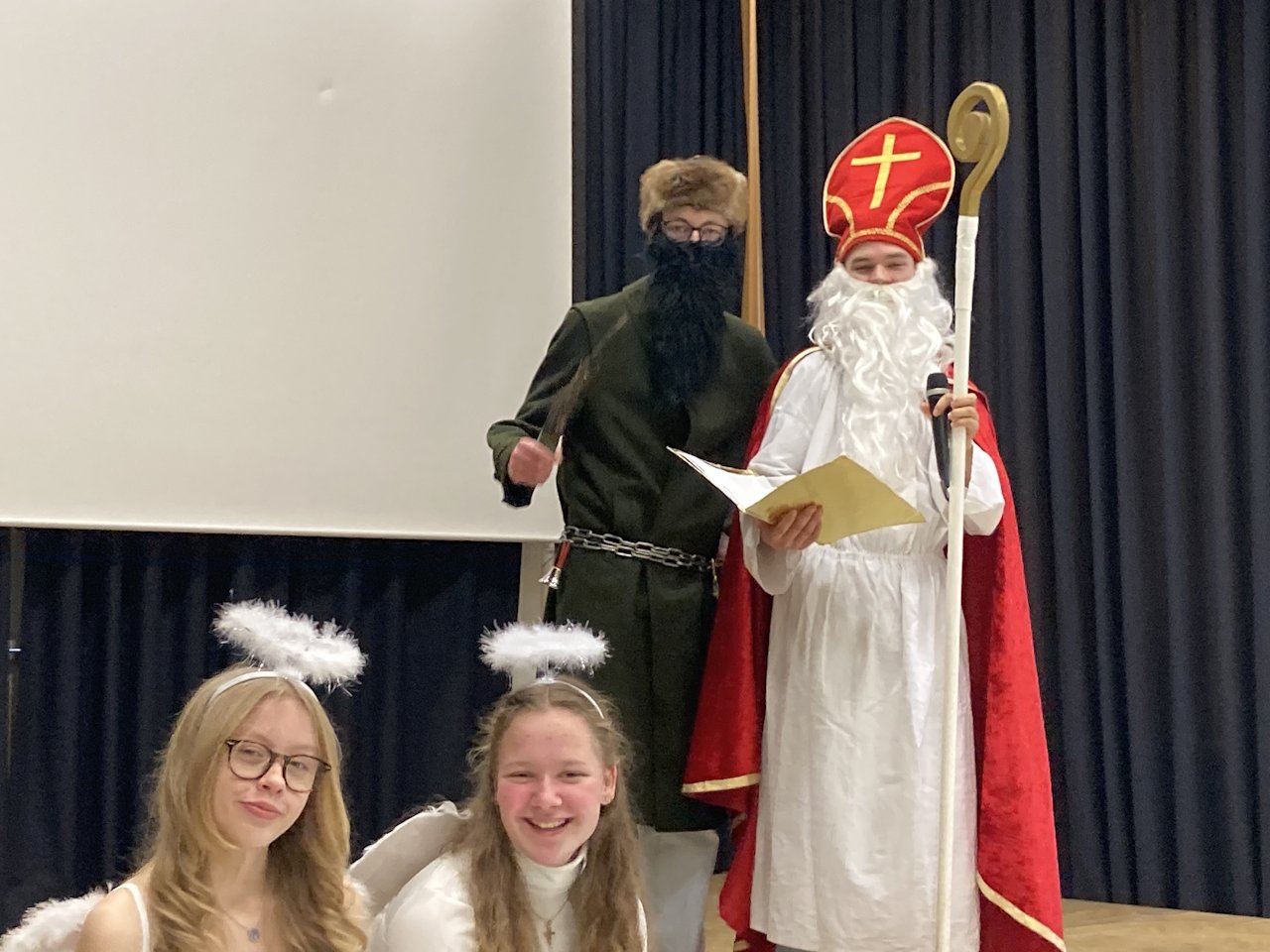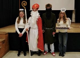 An dieser Stelle natürlich ein Herzliches Dankeschön an alle Lehrkräfte, die sich bei den Gedichten für die Klassen so viel Mühe gegeben haben, auch wenn die ein oder andere Lehrkraft bei der Anfrage schmunzeln musste. Jedes Gedicht war erstklassig. Dankeschön auch an den Nikolaus (Vinzenz Rahm, Q12), den Knecht Ruprecht (Lukas Segerer, 11a) und die Engel (Lina Weigert, 10c, Helena Piehler, 11b), die den ganzen Tag für diese wunderbare Aktion im Einsatz waren.